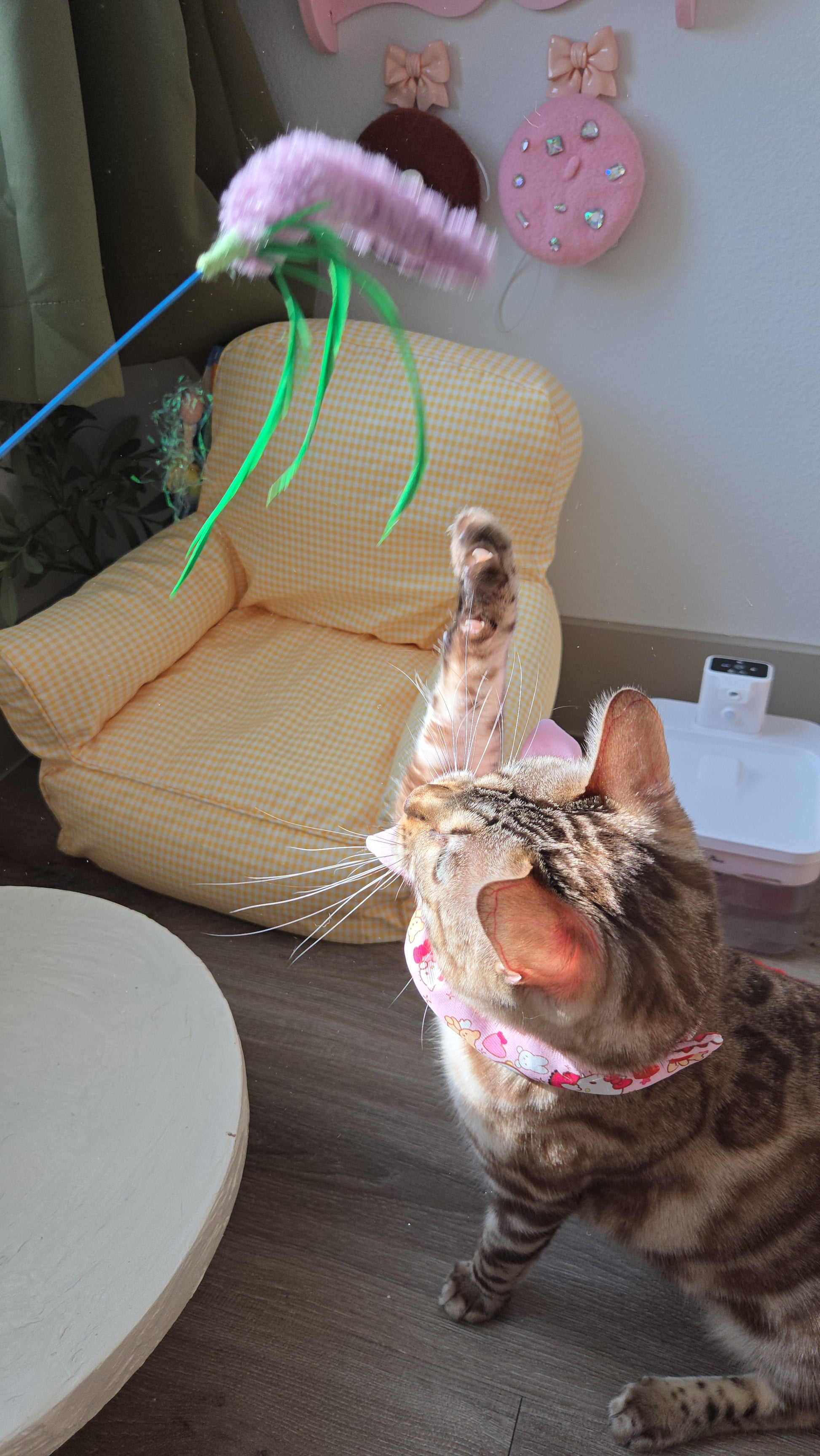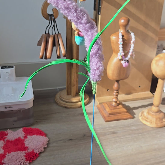 Play or display, the Lavender Pet Wand does it all. Crafted to look like a blooming lavender stem, this wand is topped with soft plush, fluttering green ribbons, and a delicate bell that jingles with every swat. It’s as pretty resting in your home as it is fun during playtime, making it the perfect blend of décor and entertainment.
