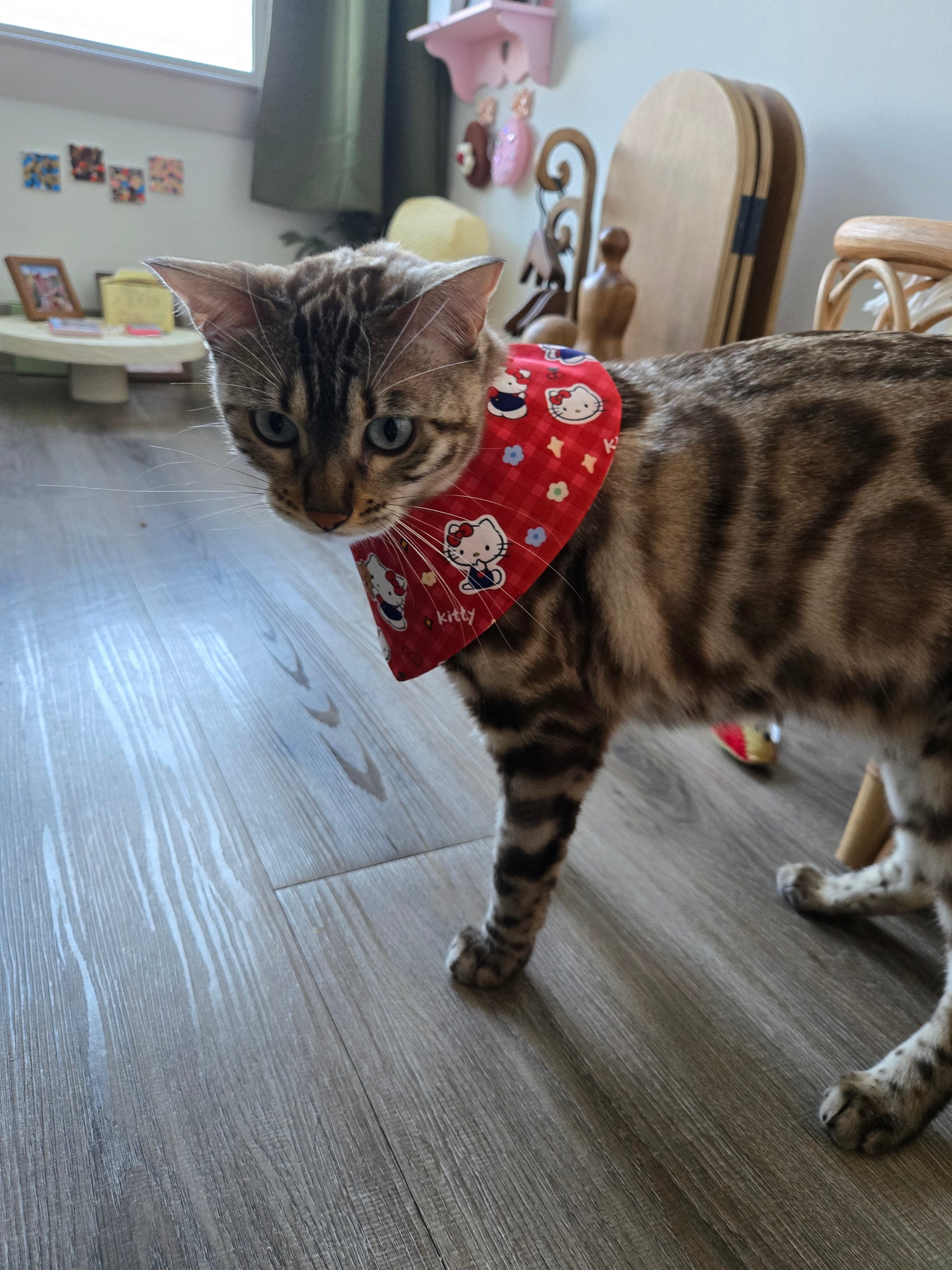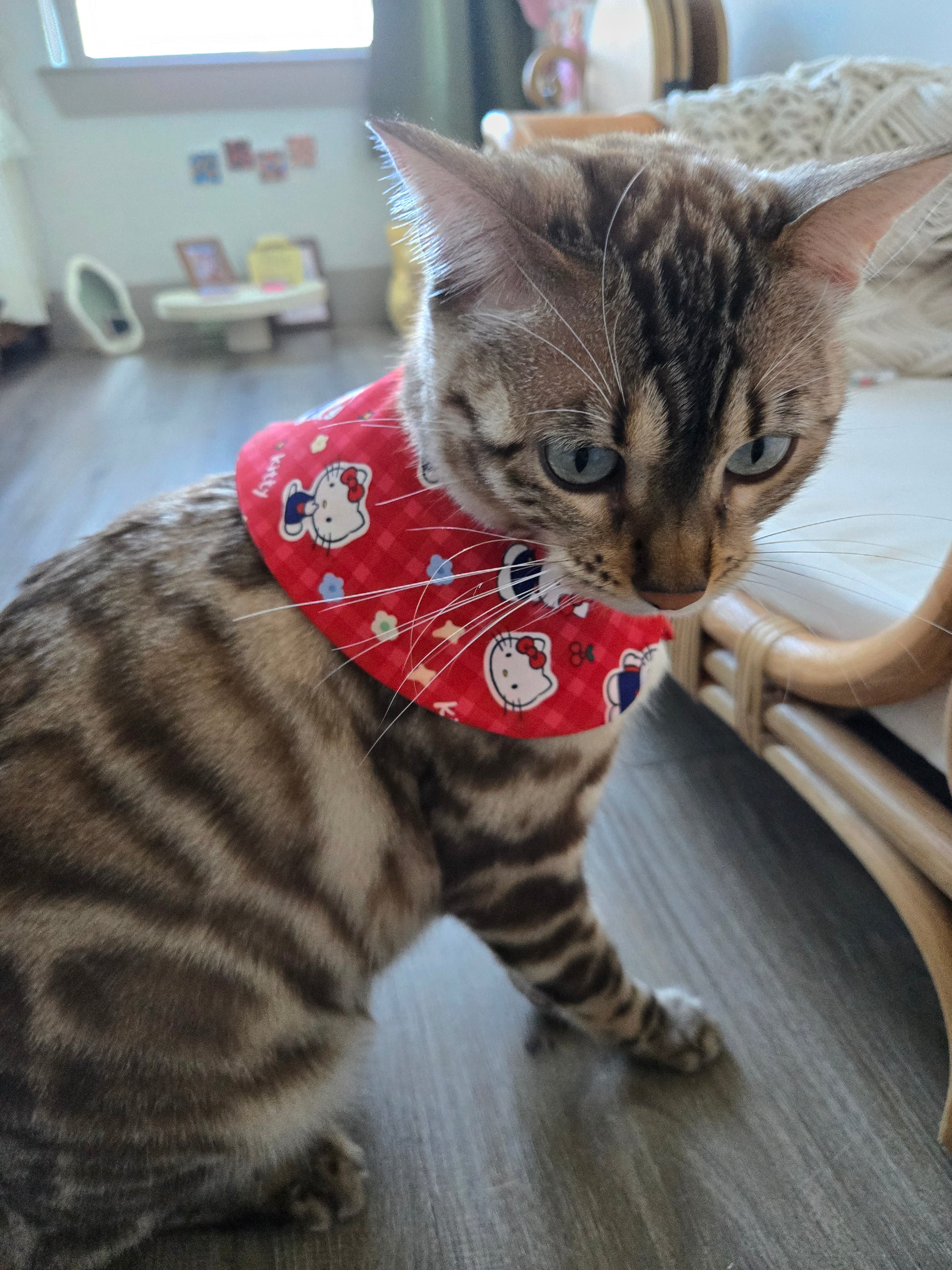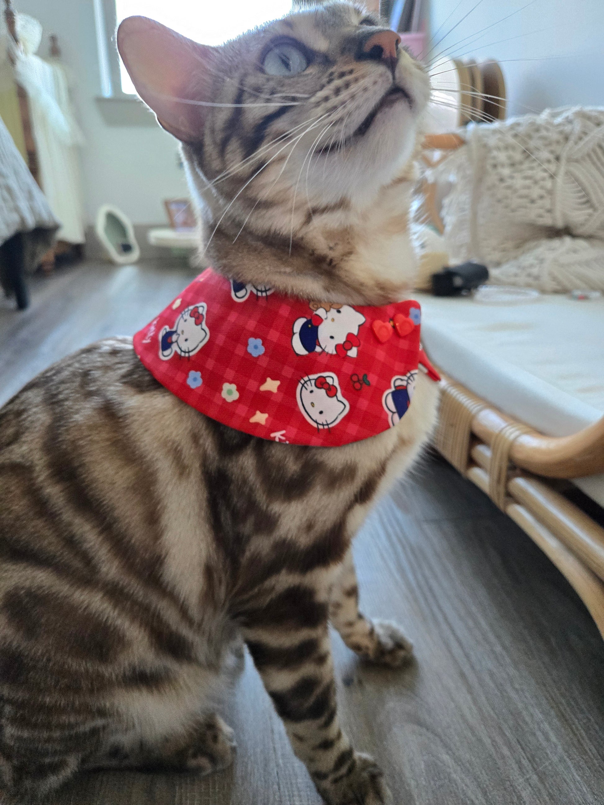 Bring a touch of nostalgia with Picnic in Bloom. One side features the iconic red-gingham style with the kitty and bows, instantly recognizable, sweet, and timeless. Flip it over and discover bold camellias with hidden black cats, giving your fur-baby an elegant twist that feels straight out of a fashion storybook.