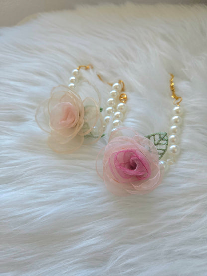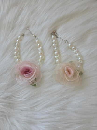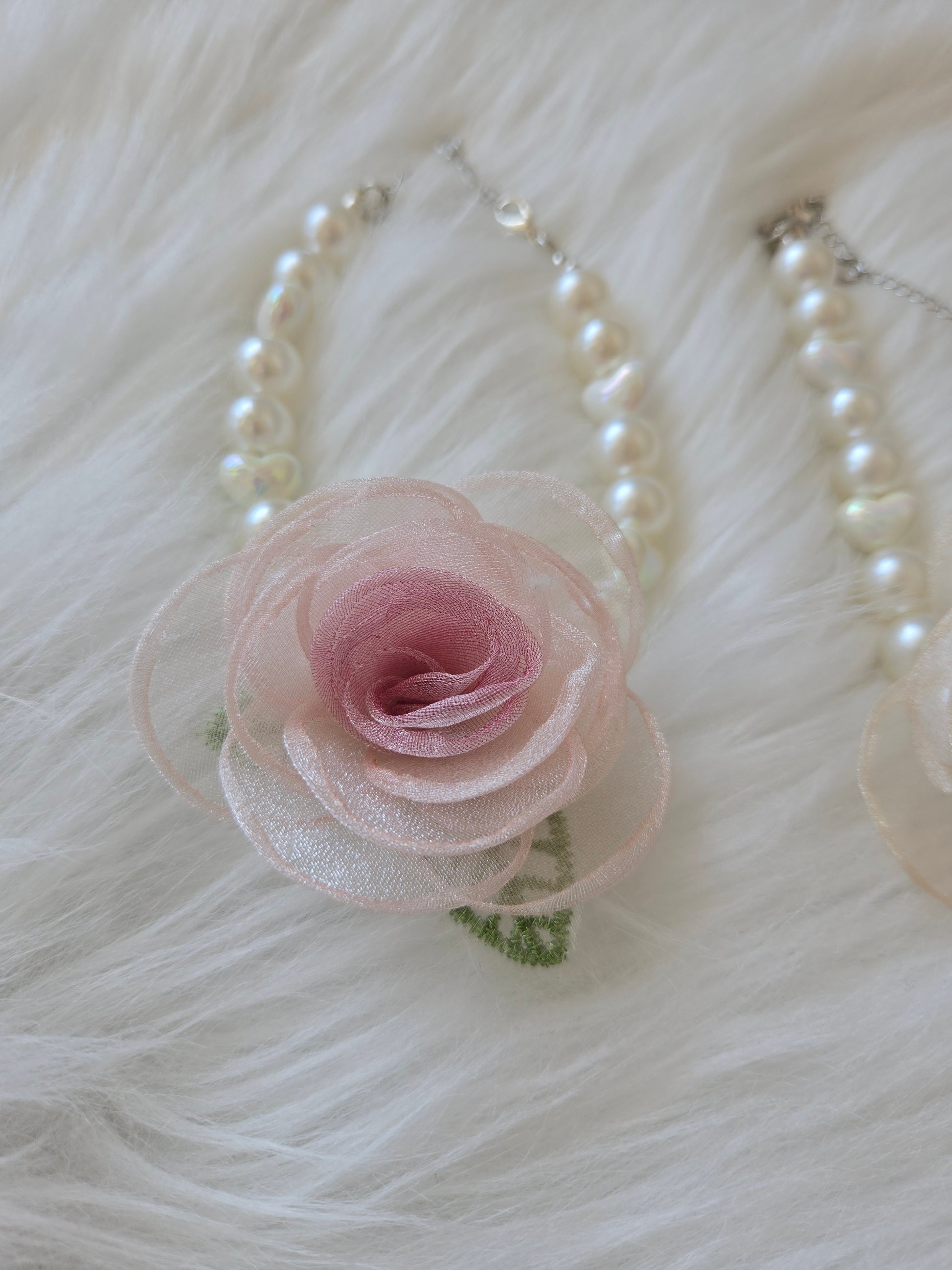 This necklace pairs soft, translucent petals with delicate pearls, creating a piece that feels gentle, romantic, and a little bit nostalgic. Each bloom sits close to the heart, as if placed there with intention.