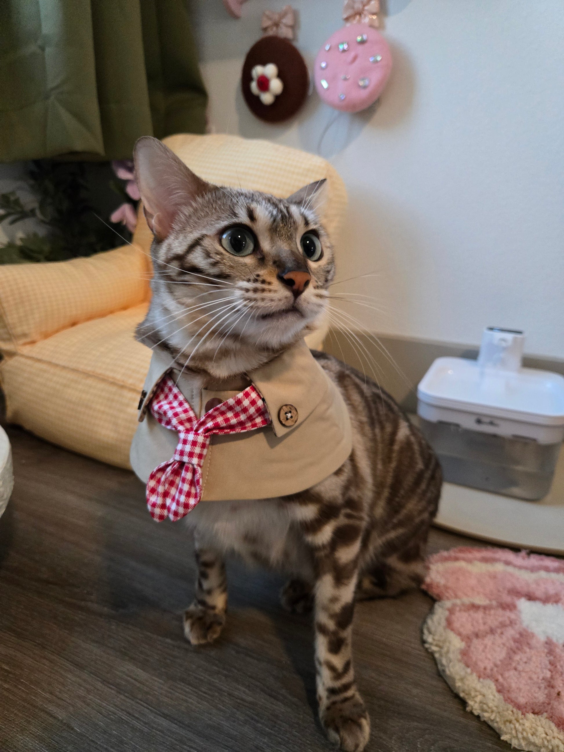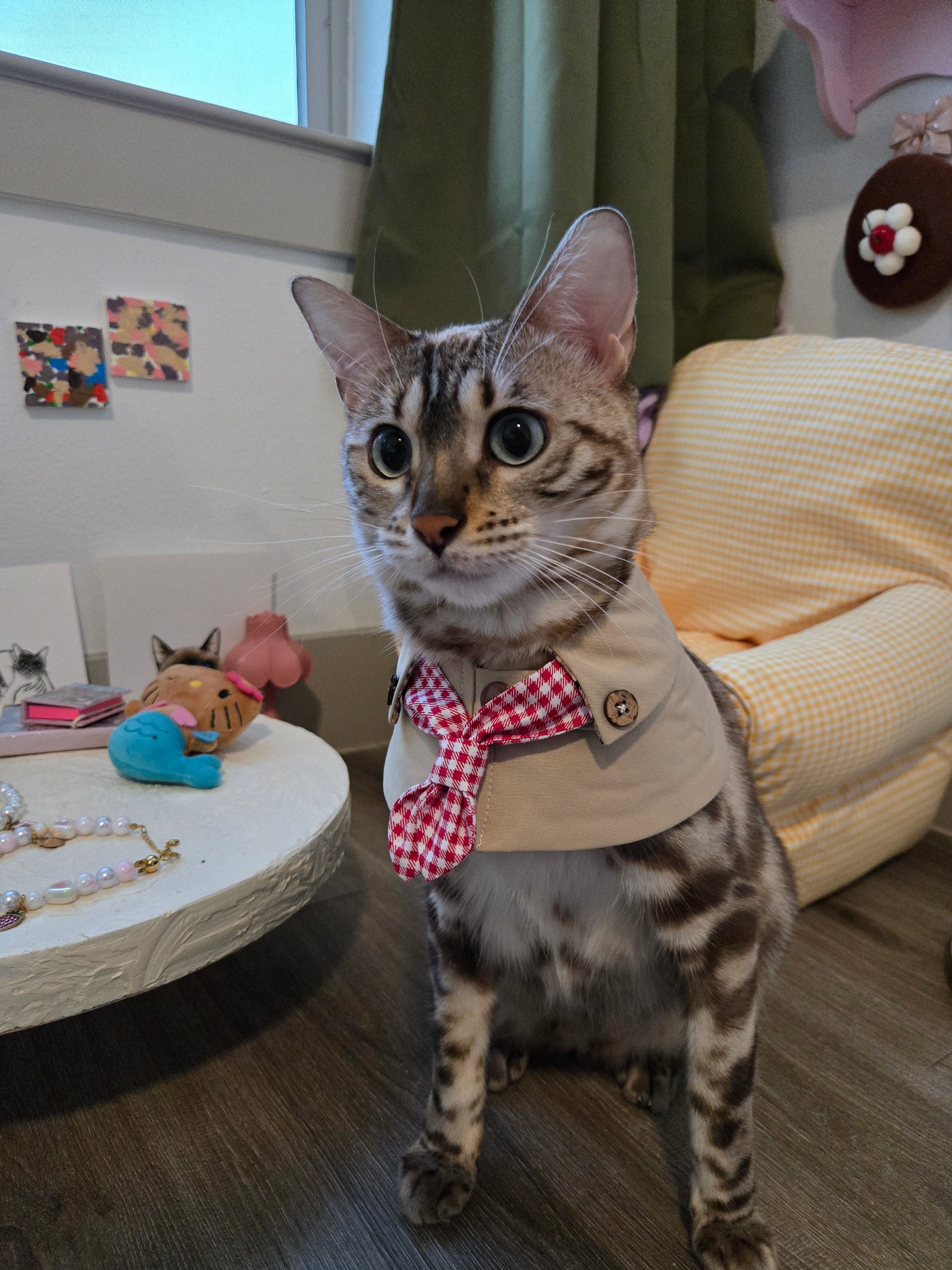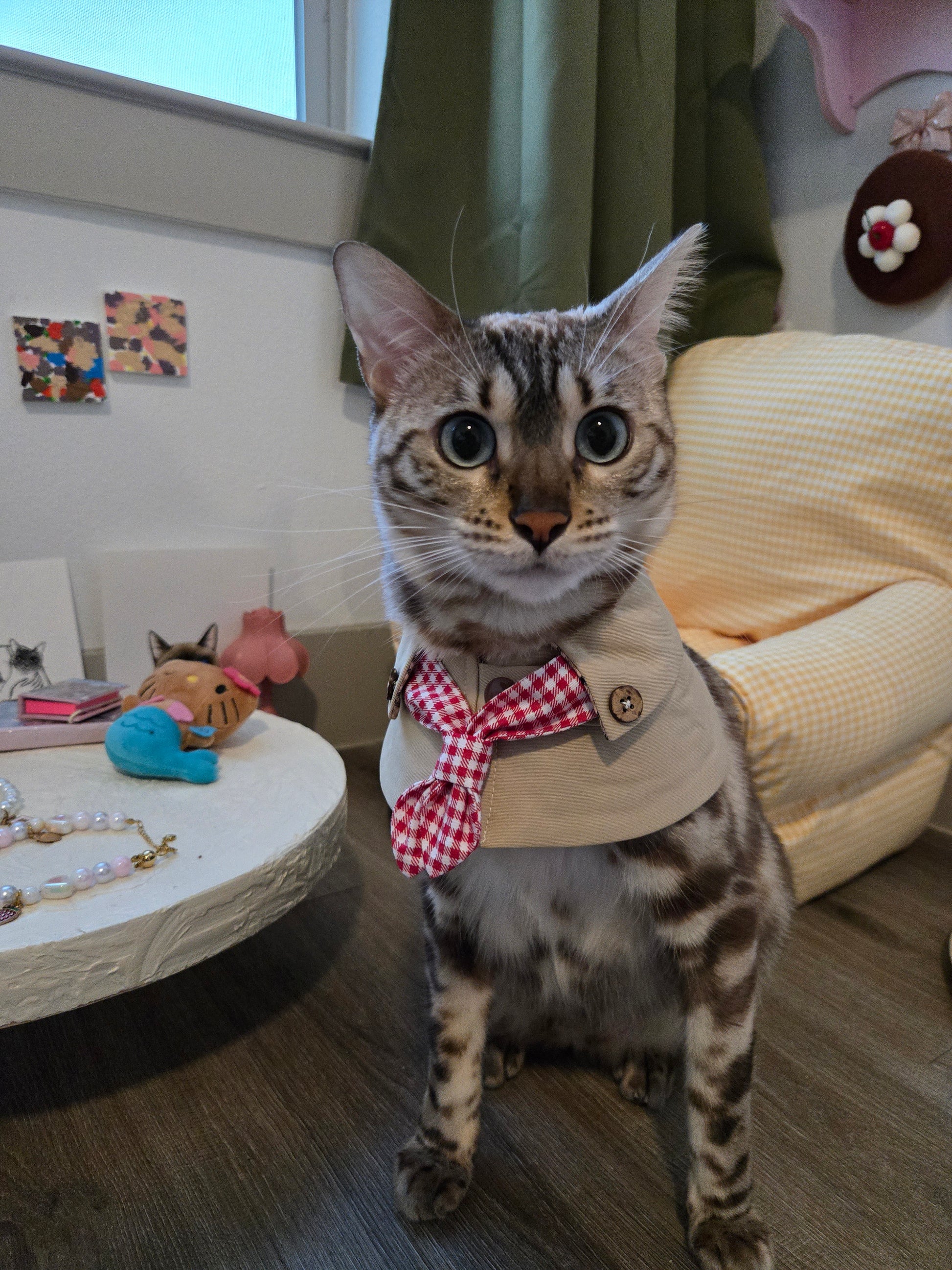 Sweet, tailored, and unmistakably Parisian, The Paris Sweetheart Coat reimagines classic trench details through a romantic lens. Its crisp beige body, delicate check lining, and charming red gingham bow evoke the kind of effortless style you’d spot on a stroll through Le Marais or outside a cozy café in Paris.